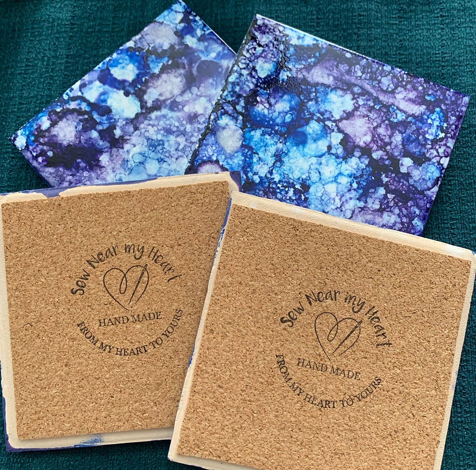 Purple blue and gold fluid art coaster set